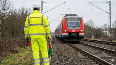 Qualifizierte Sicherungsaufsicht und Warnung bei Zugfahrten im Gleisbereich.